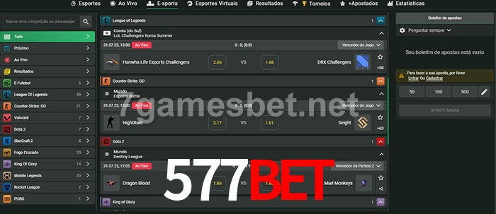 O 577bet oferece uma grande seleção de opções de apostas em e-sports com probabilidades competitivas